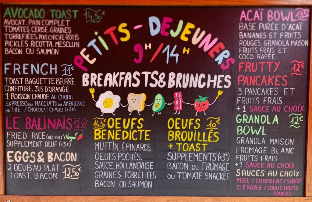 La cuisine vous prépare les meilleurs œufs benedicte de la région, des œufs brouillés ou au plat bacon ou saumon, des pancakes, un english breakfast typique et autres bowls jusqu’à 14h tous les jours!
